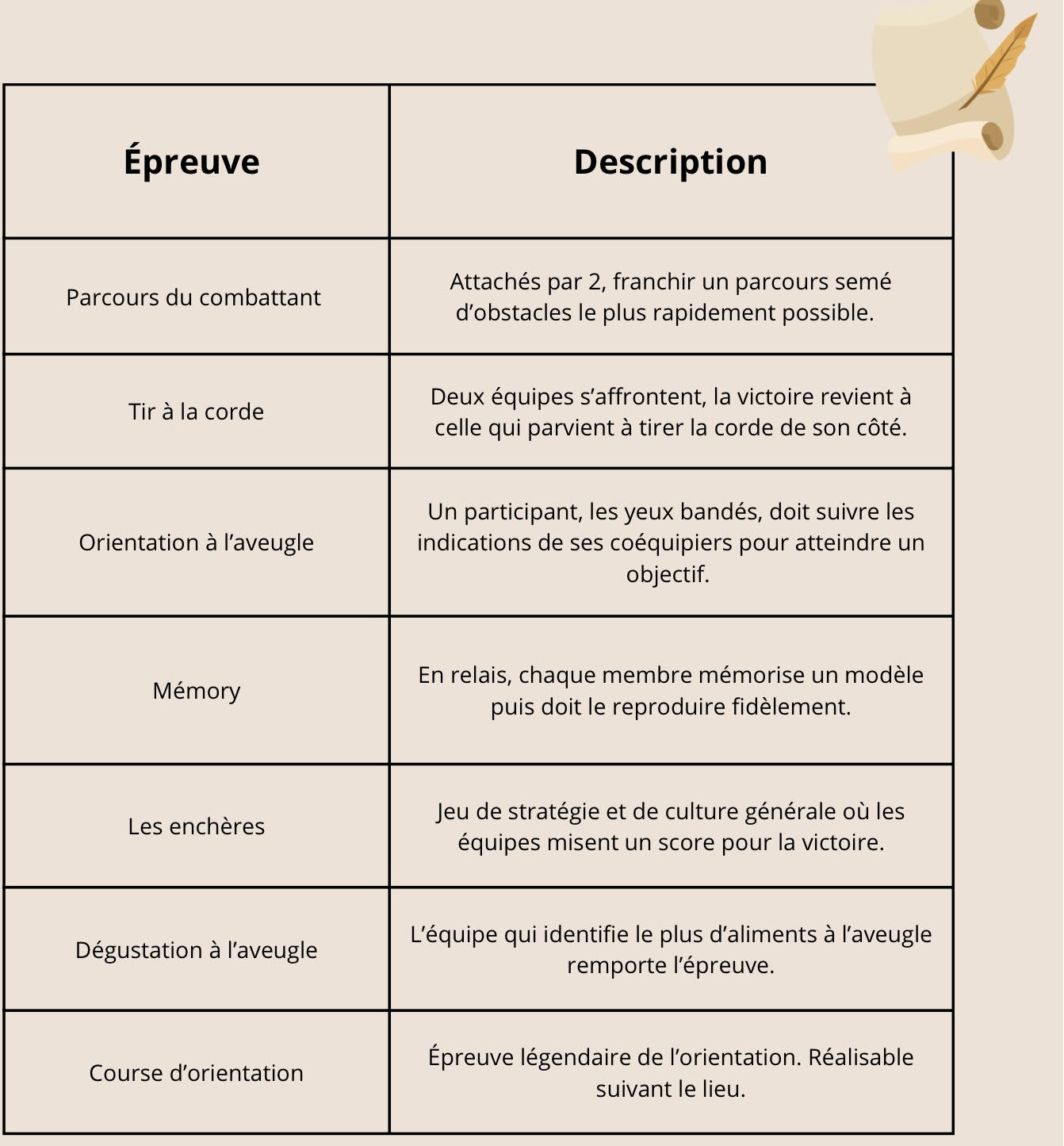 Proposez ce challenge également appelé Team Building à vos collaborateurs avec défis alliant activités physiques, épreuves cérébrales et communication. Sélection des épreuves suivant le nombre de personne, le lieu ainsi que la durée de l’évènement.